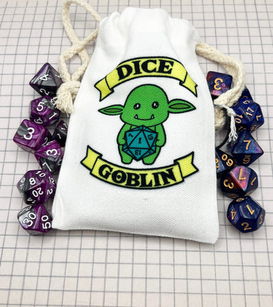 Small drawstring dice bag measuring: 4 inches wide by 6 inches tall (approximate).