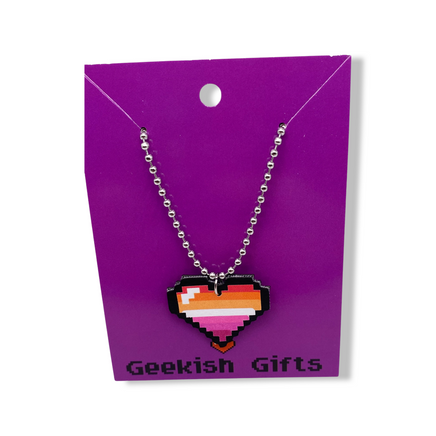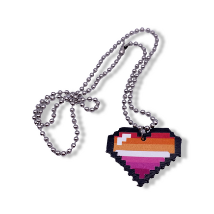 Lesbian Pride Pixel Heart Faux Leather Necklace
