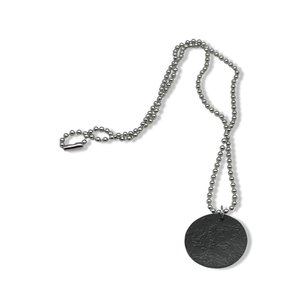 Charm is approximately 1 inch wide by 1 inch tall. Ball chain length is approximately 18 inches.