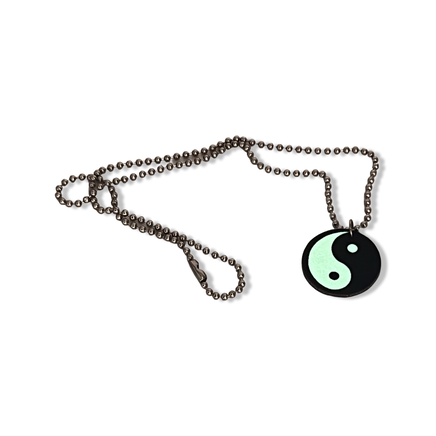 This necklace glows in the dark! (After being charged under light that is) This necklace is lightweight and nickel free! Charms are backed with faux leather.