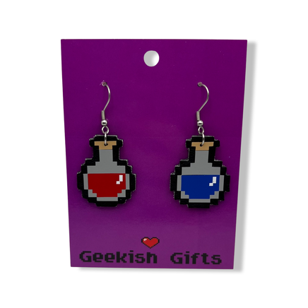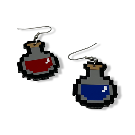 Pixel Potions HP and MP Faux Leather Earrings