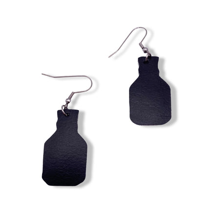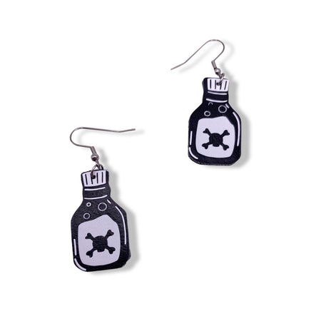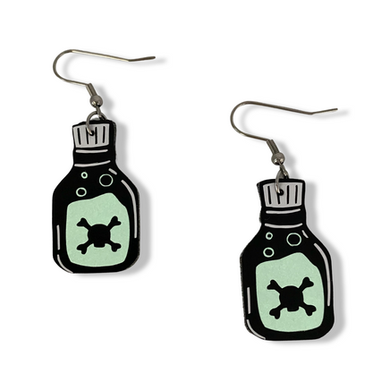 These spooky little poison bottle earrings glow in the dark! (After being charged under light that is) - Just the “liquid” portion glows, the other details remain white)