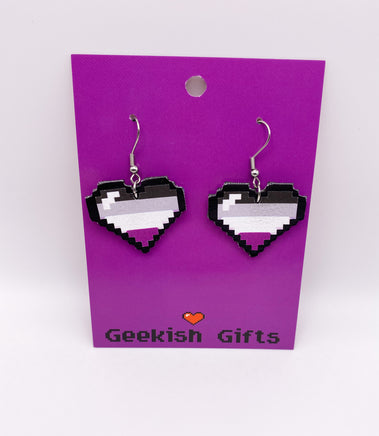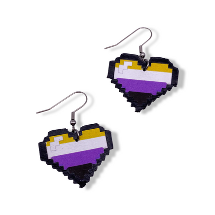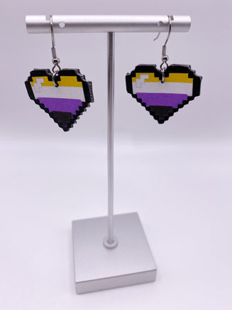Non- Binary Pride Pixel Heart Faux Leather Earrings