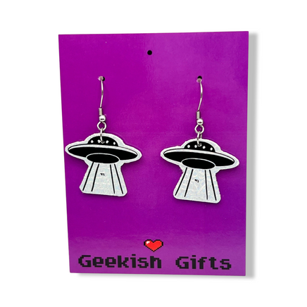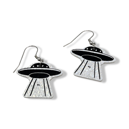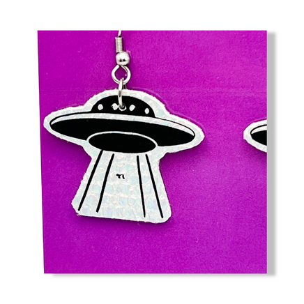 UFO Holographic Faux Leather Earrings
