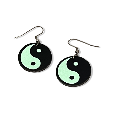 Yin Yang Glow In The Dark Faux Leather Earrings