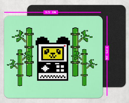 This mousepad measures 9.5 inches wide by 7.75 inches tall. Thickness is approximately 2mm.