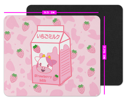 This mousepad measures 9.5 inches wide by 7.75 inches tall. Thickness is approximately 2mm.