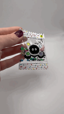 Handmade shaker pouch with a variety of themed charms inside. Just give it a shake and watch the charms flutter about. Super cute and satisfying! Star keychain hook is spring loaded and easily clips onto your favorite bags.