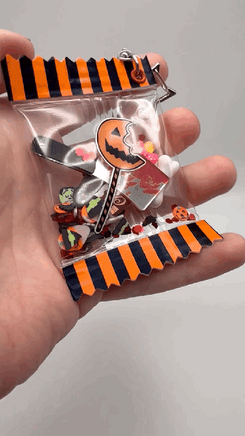 Handmade shaker pouch with a variety of themed charms inside. Just give it a shake and watch the charms flutter about. Super cute and satisfying! Star keychain hook is spring loaded and easily clips onto your favorite bags.