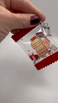 Handmade shaker pouch with a variety of themed charms inside. Just give it a shake and watch the charms flutter about. Super cute and satisfying! Star keychain hook is spring loaded and easily clips onto your favorite bags.