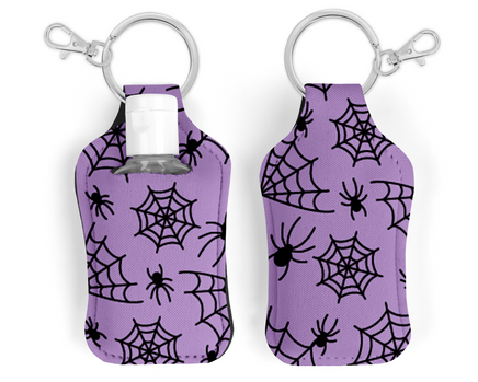 Stitched neoprene hand sanitizer case with keyring. Bottle included.