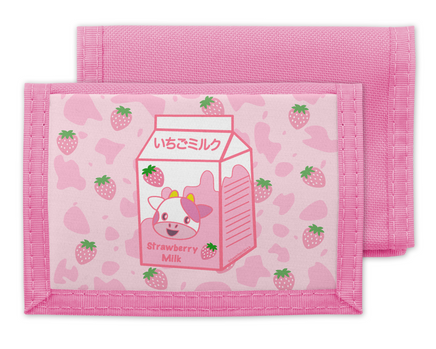 Strawberry Milk Cow Nylon Tri-fold Wallet